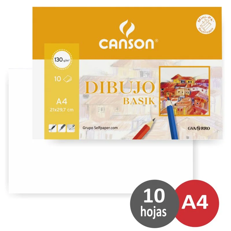 Pack Canson 10 Hjs. A4 Dibujo Basik 130gr.