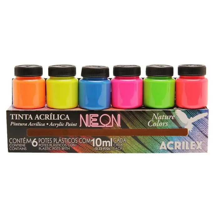 Set Pintura Acrilica Neon 6 Colores 10ml. Acrilex 3906