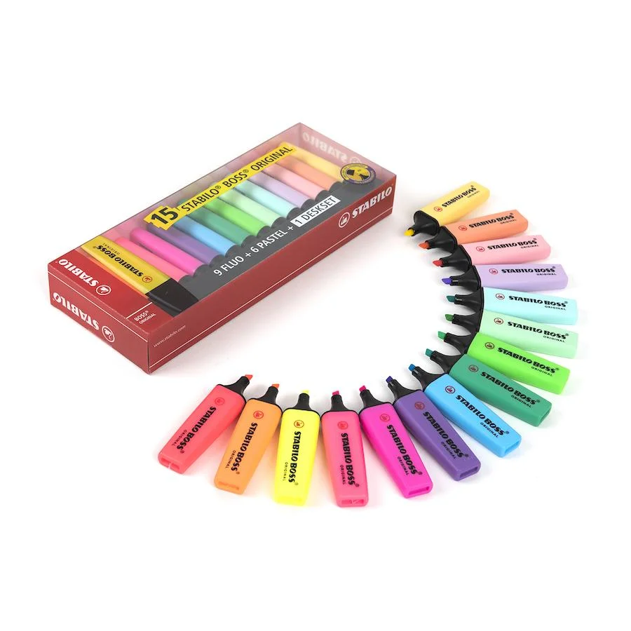 Set 15 Destacadores Stabilo Boss Neón y Pastel 7015-01-5