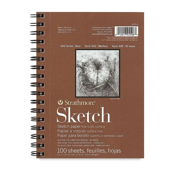 Este papel de boceto de uso general está destinado a la práctica de técnicas, estudios rápidos y dibujo preliminar con cualquier medio seco.