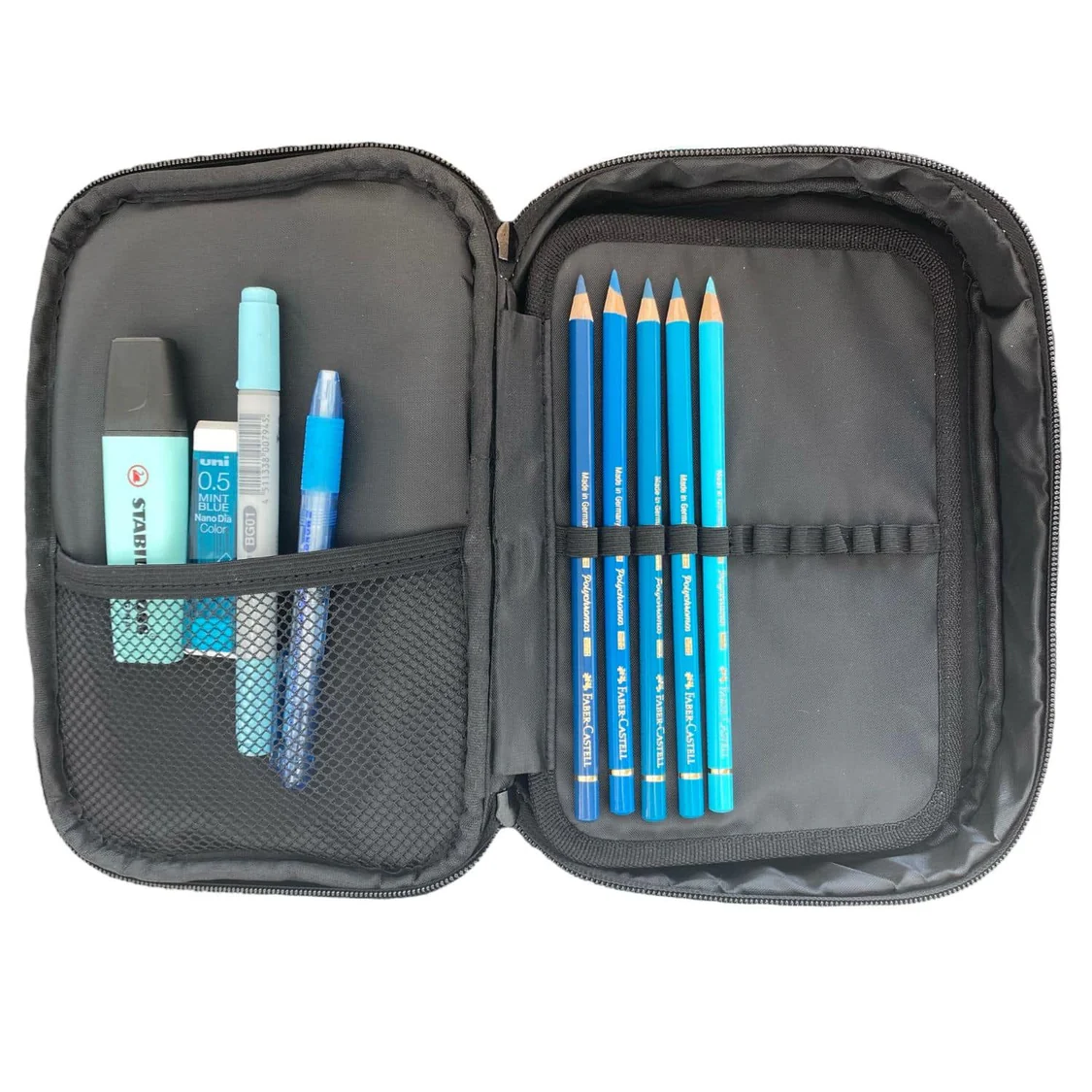 Solapa incluye 12 espacios con elásticos por lado, 24 en total.