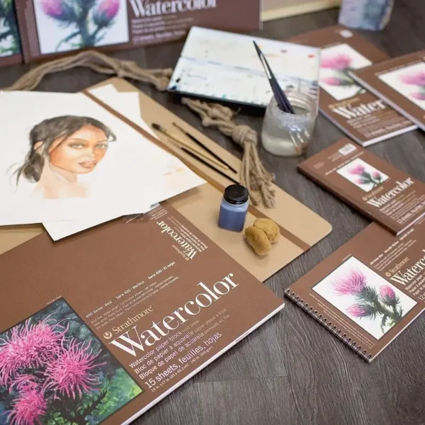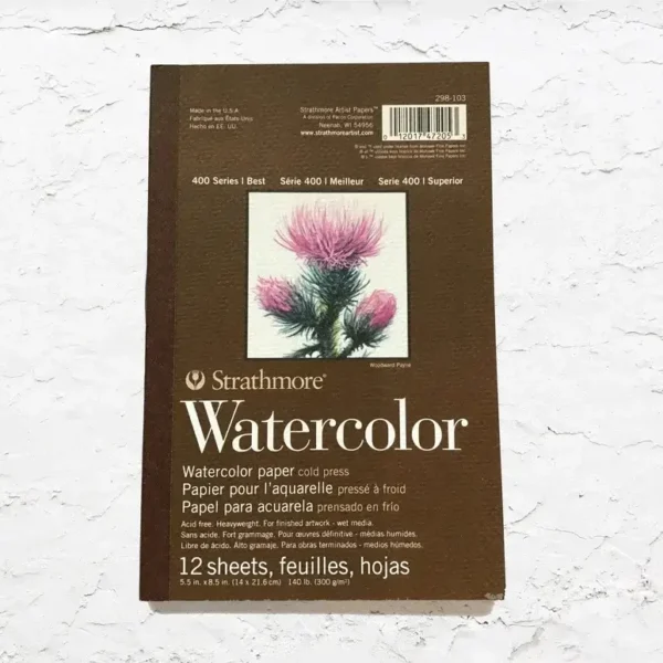Los Blocks para Acuarela 400 Series Watercolour de la marca Strathmore están compuestos de pape de alto gramaje, apto para ilustraciones terminadas y medios húmedos. Su superficie resistente permite aplicaciones de levantamiento y raspado. Su color blanco natural y superficie tradicional de prensado en frío lo convierten en la hoja ideal para dominar las técnicas de acuarela. Este papel presenta dos barbas, lo que le otorga un acabado distintivo. Además, es libre de ácidos, garantizando seguridad para trabajos artísticos.
