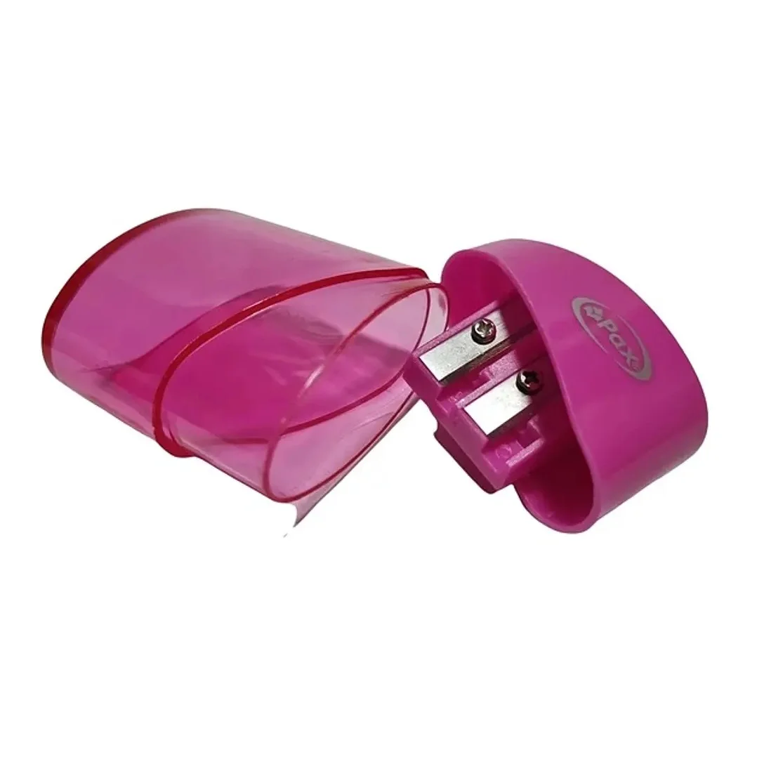 Sacapuntas plástico marca Pax, doble orificio, con depósito, excelente calidad, variados colores